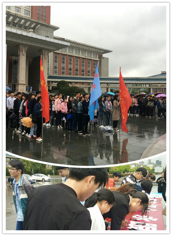 升旗仪式后,由学生代表做纪念五四运动主题演讲。活动最后,各系学生代表在活动横幅上签字。本次升旗仪式圆满结束。