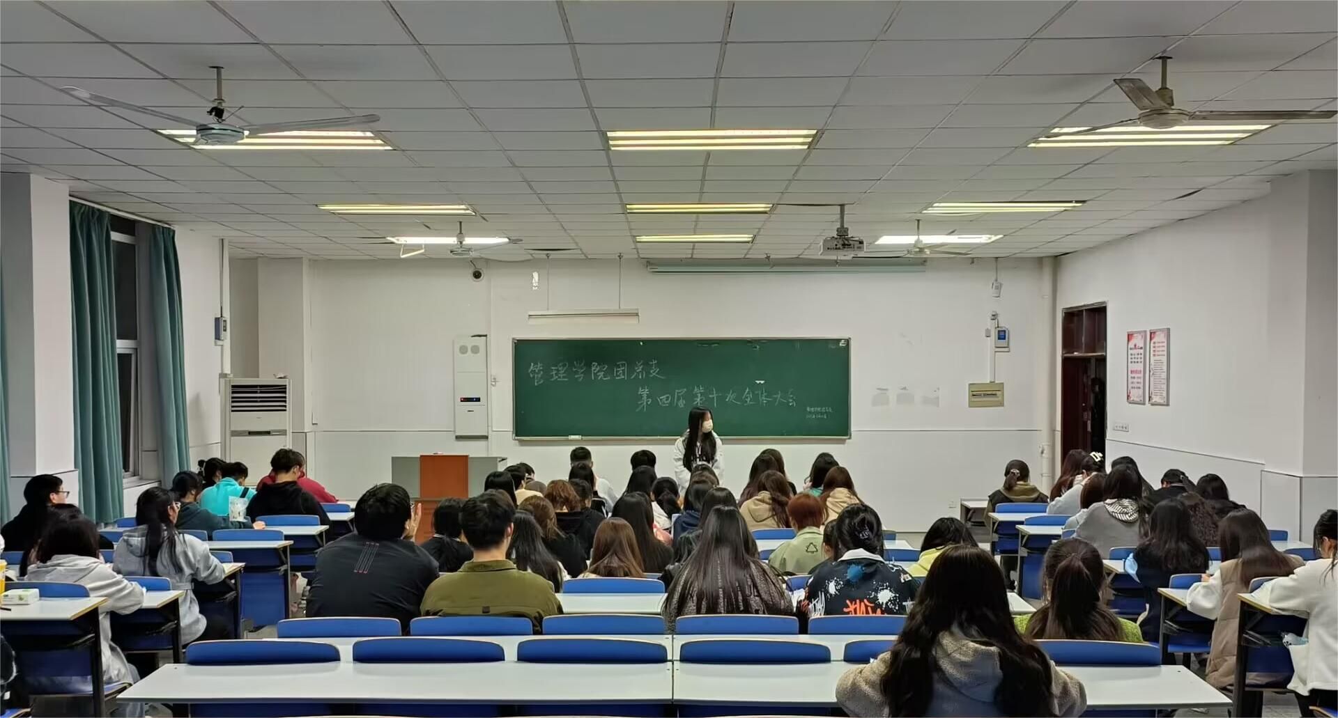 为了进一步加强团总支的组织管理,完善学生组织建设,推动各项工作的顺利进行,管理学院团总支于2023年3月12日18:30在1102教室开展团总支第四届第十次全体大会,本次大会由团总支副书记於美娜负责,团总支全体成员参加。