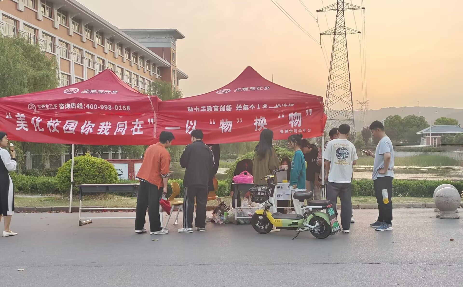 活动开始,志愿者积极向往来的同学大力宣传本次活动,向同学们说明举办此次活动的目的。通过类似以物换物的活动方式,让大家将身边的可回收垃圾回收换物,让垃圾获得新的价值,同时也能让同学们更好的学会垃圾分类,让校园更干净整洁。