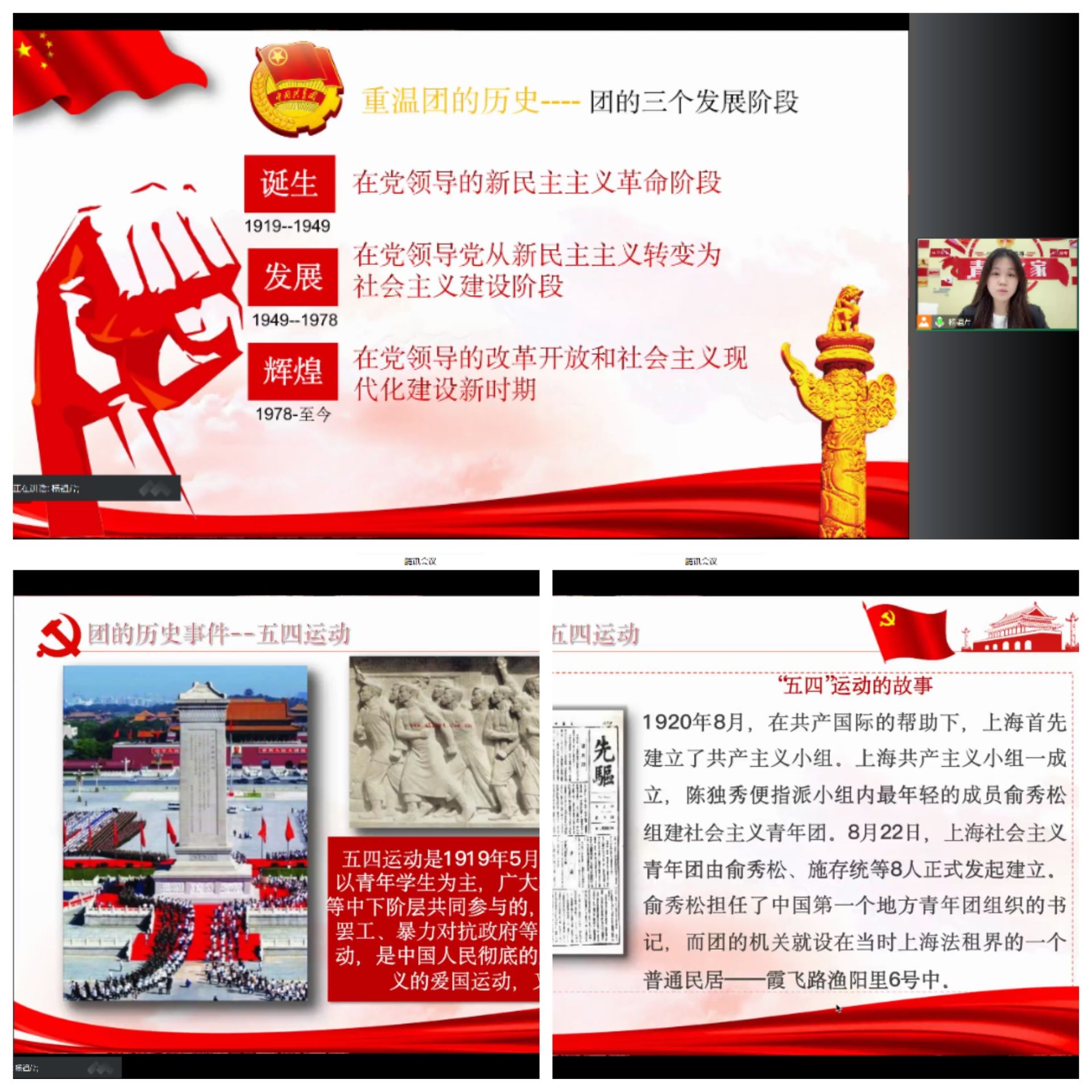 活动中,主持人杨祖芹通过PPT依次讲述了共青团的诞生、共青团的成长、新中国成立后共青团的发展,在讲到新中国成立后共青团的发展中,让大家更深刻地认识到共青团将团结带领亿万青年投身全面建设小康社会的伟大实践。同时,通过学习模范青少年的英勇事迹,也大大提高了大家的思想觉悟,让各位同学受益匪浅。
