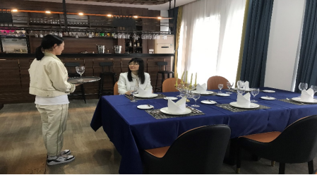 5月10日下午,校第九届学生技能竞赛“餐厅服务”赛项在1601餐饮综合实训室举行,旅游管理专业教师团队担任评委。