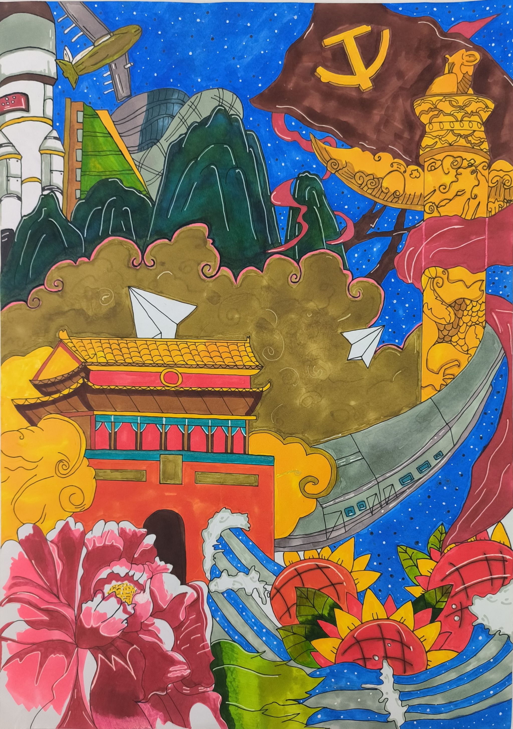 活动开始,管院学子提起画笔,以画为媒,展现了十年来在中国共产党领导下中国取得的伟大成就,以饱满的热情、昂扬的精神状态宣传党的二十大精神,抒发了青年大学生的爱党爱国情怀,参赛作品主题鲜明、意蕴深刻、内容丰富。最后,由办公部内部评定并颁发奖状。