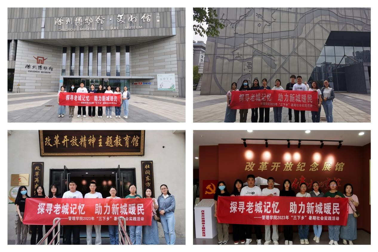 为深入学习贯彻党的二十大精神,引导青年学生在社会实践中认识社会、服务社会,促使青年学生厚植爱党、爱国、爱滁的深厚情感,管理学院成立了暖民有我暑期社会实践团队,并于6月17日—6月24日开展了“探寻老城记忆 助力新城暖民”暑期社会实践活动,本次活动由吴珍珍、汪亚运老师负责,共计70余人次参加。活动以“探寻老城记忆 助力新城暖民”为主题,以滁州历史文化为依托,以滁州10项暖民心行动为切入点,开展“一三五”专项调研及志愿服务活动,即:重走一次老城区、参观三个主题馆、开展五项志愿服务活动。