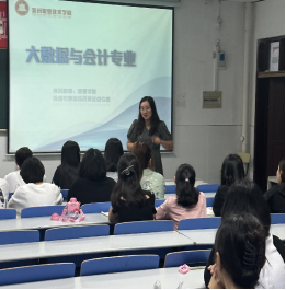 在正式介绍专业基本情况前,夏老师先从同学们在生活中遇到的实例出发,向同学们解释什么是大数据以及大数据有什么作用,从而引出大数据与会计专业并激发同学们学习本专业的兴趣。