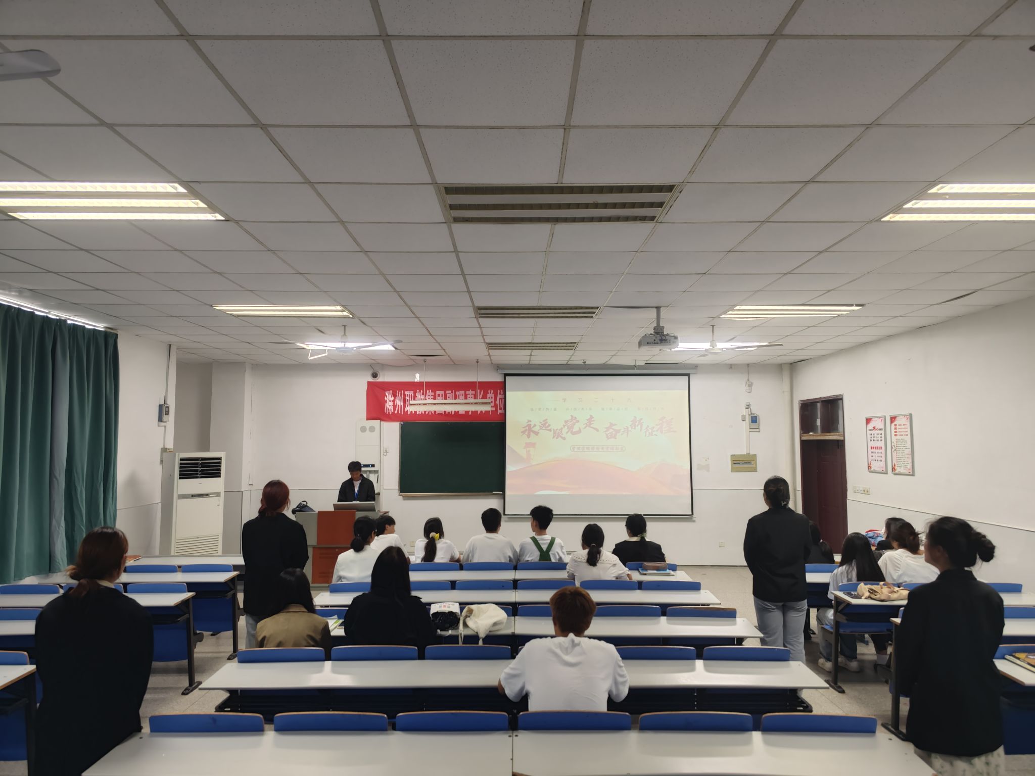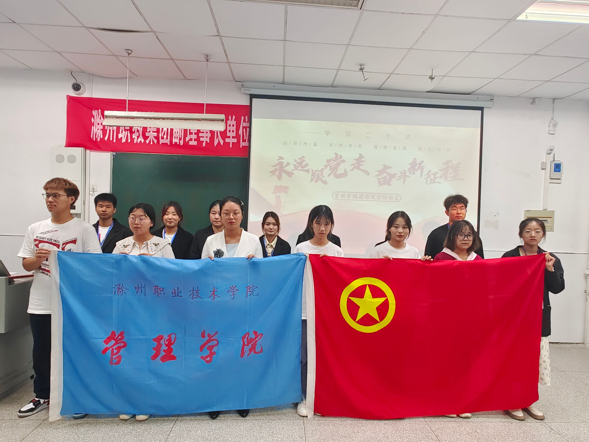 为弘扬中华优秀传统文化,全面提高学生的人文素质,丰富学生的文化生活,推动校园文化建设。管理学院团总支于2023年9月15日11:40在1102教室举办“永远跟党走,奋进新征程”经典诵读活动,本次活动由团总支宣传部负责,22级同学积极参加。