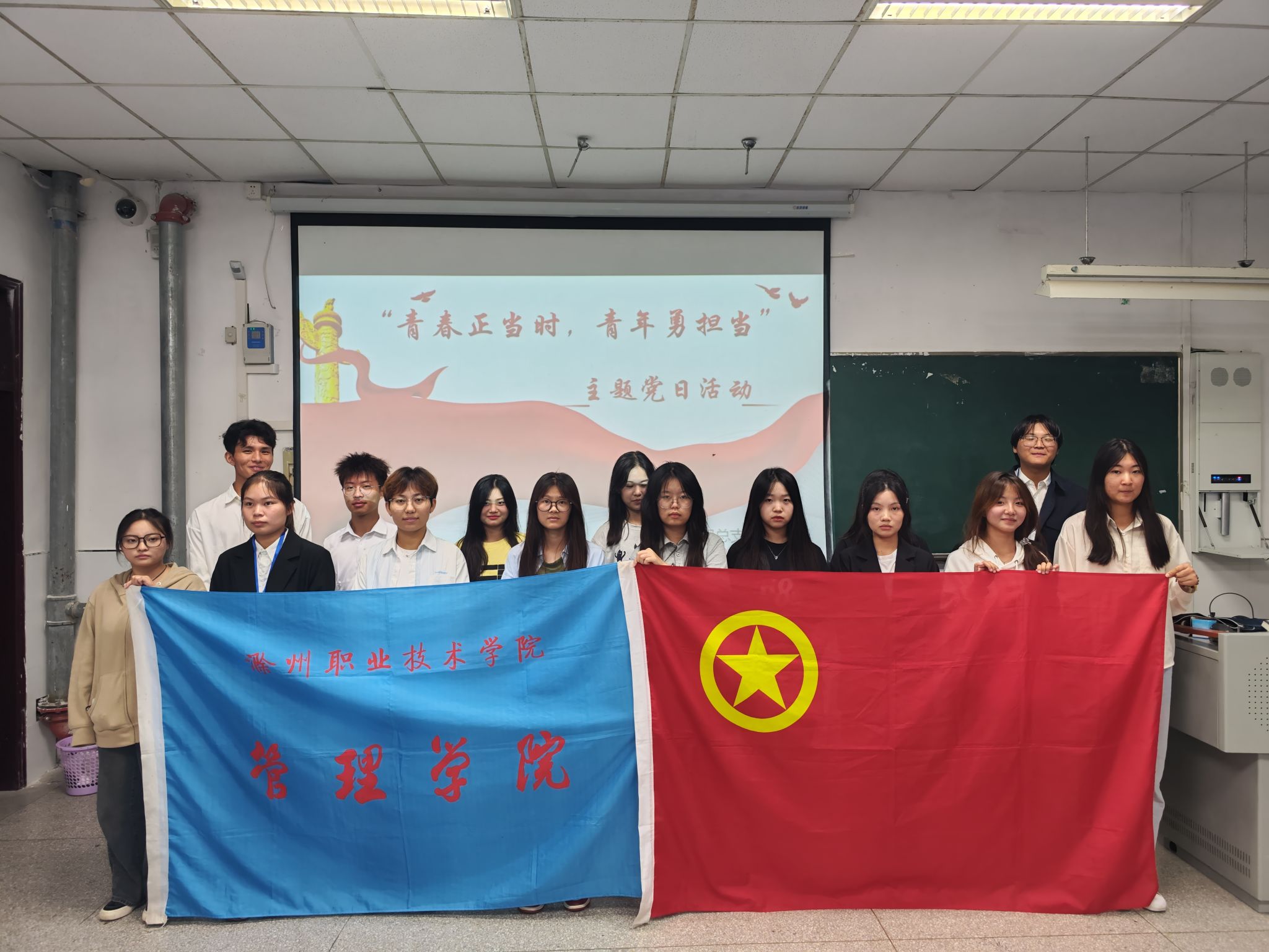 为进一步推进青少年积极向上,勇攀高峰。管理学院学生联合管理党支部于2023年9月13日开展“青春正当时,青年勇担当”主题党日活动。本次活动由组织部查俊宇主持,管理学院各期入党积极分子和预备党员参加。