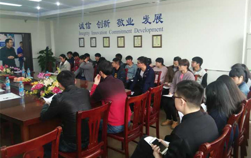 活动过程中,富达公司的工作人员带领同学们参观了他们的生产车间,然后给给同学们进行了讲座。学生们就参观他们的生产车间以及对公司的经营模式等,提出了一些问题,并得以解答。