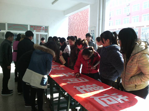 期末将近,为了端正考风,严肃考纪,加强学风建设,营造文明、诚信考试的良好氛围。2015年1月4日中午,经济贸易系团总支、学生会在经贸大厅开展了以“诚信考试”为主题的考试签名活动。