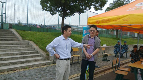 汪院长一行又来到军训服务点,慰问了在服务点值班的老师志愿者们。他关切地询问了军训期间医疗服务的情况,充分肯定了军训服务站志愿者们的工作,并希望他们再接再厉,坚守岗位,扎实做好后勤保障工作,确保军训工作安定、有序进行。