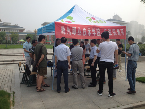 6月30 日上午,在学院的统一部署下,经济贸易系参加了学院举办的安徽省2014年示范性高职院校招生展示会暨第二届校园开放日活动。 经贸系主任翁家晨、副书记陈开兵、副主任宋君远及各教研室主任参加了此次活动。