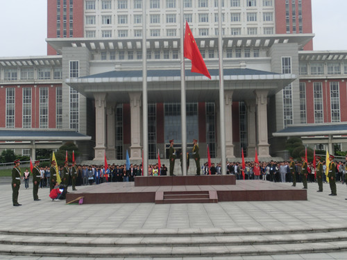 2014年5月4日清晨,经济贸易系团总支、学生会积极组织同学们参加了由院团委在综合楼前举行的“践行价值观,托举中国梦”主题升旗仪式。
