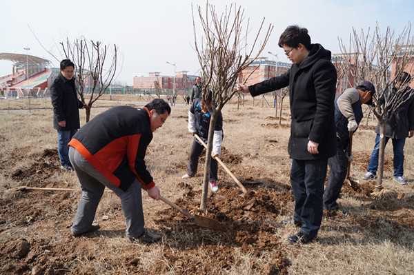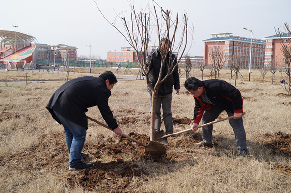 2014年3月13日,经贸系教学和学生管理副科以上干部积极响应学院“3.12植树节”义务植树活动的号召,走出办公室走进校园开展义务植树活动。