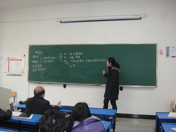 课后,听课教师分别对两位教师的授课方式,如板书书写、教学仪态、案例导入等方面加以点评。