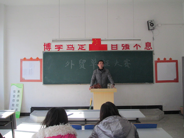 首先,国贸教研室主任朱永勇指出,函电处理与单据缮制是外贸业务活动中非常重要的两大环节,希望大家能以此为契机,找找差距,转变观念,为今后的专业学习进一步明确方向,同时也鼓励大家要沉着应战,团结合作,赛出水平,争创佳绩。