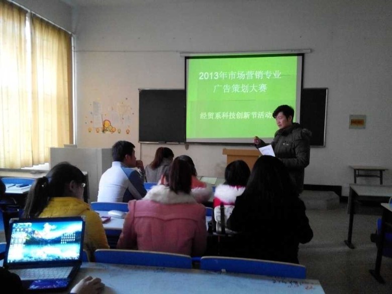 2013年12月4日下午,经济贸易系市场营销专业在我院一号教学楼举行了“广告策划大赛”。本次大赛是经贸系科技创新节系列活动之一,自11月上旬就开始由市场营销专业的各位老师进行筹备,并得到了市场营销专业学生的积极支持。