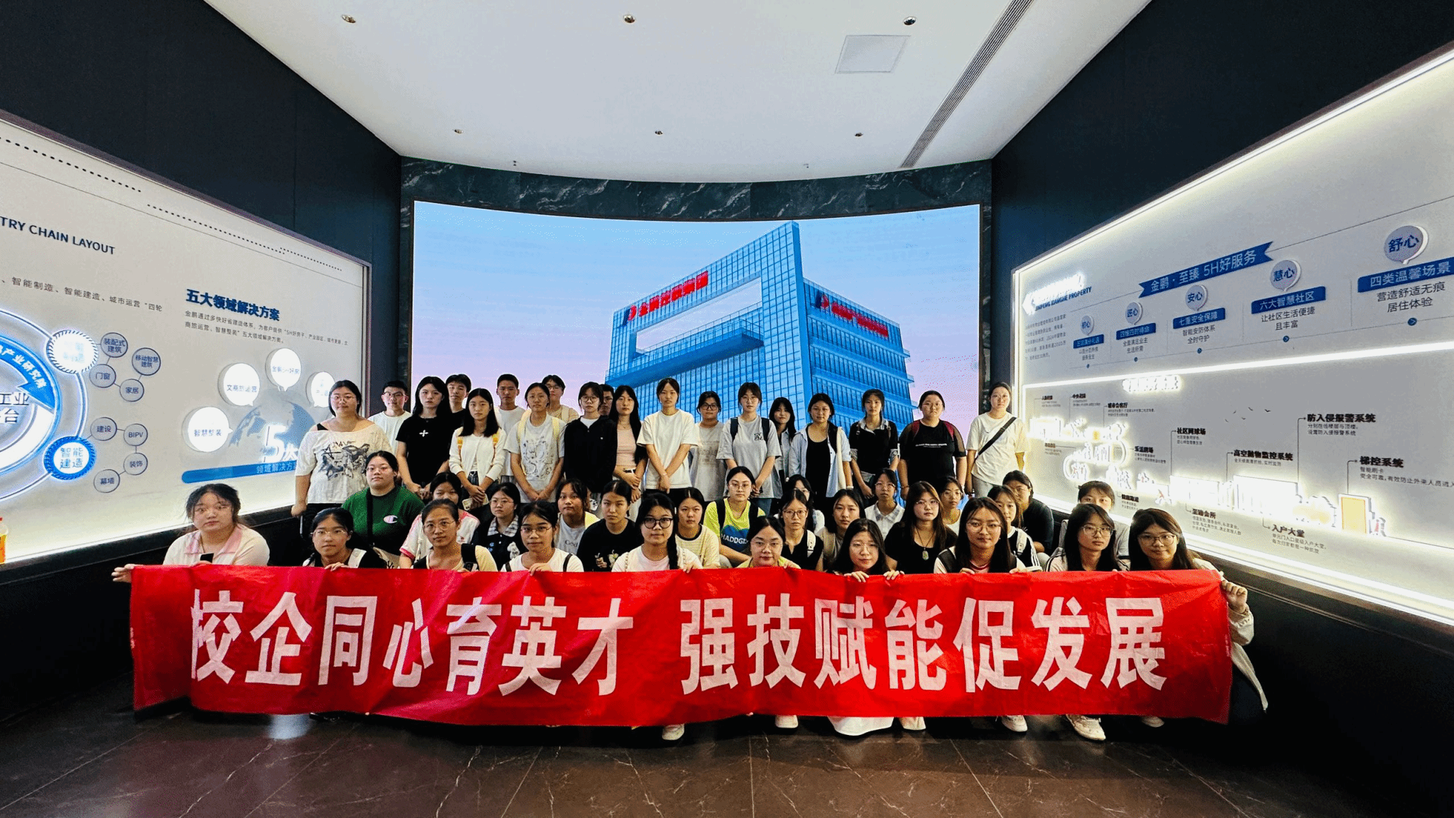 为帮助大数据与会计专业2025级新生快速了解专业应用场景、搭建理论与实践的连接桥梁,9月11日,管理学院组织该专业全体新生前往滁州当地龙头企业金鹏绿色建筑产业集团、金鹏云境营销中心开展认识实习活动。产业教授唐雪梅全程跟班指导,夏敏、刘慧娟、陈晓鸣、张妍、朱永勇、魏贤富、王柏香、刘芃等8位专业教师带队,跟班辅导员孙宛秋同步做好学生管理与服务工作,确保实习活动安全、有序、高效开展。