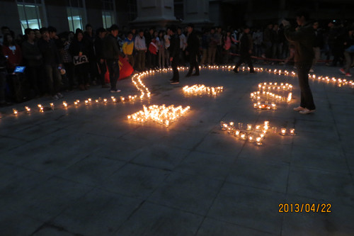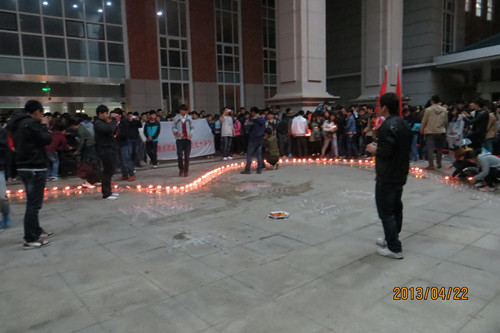 2013年4月22日晚,经贸系团总支、学生会组织同学们参加了院团委开展的愿逝者安息,生者节哀雅安祈福活动。