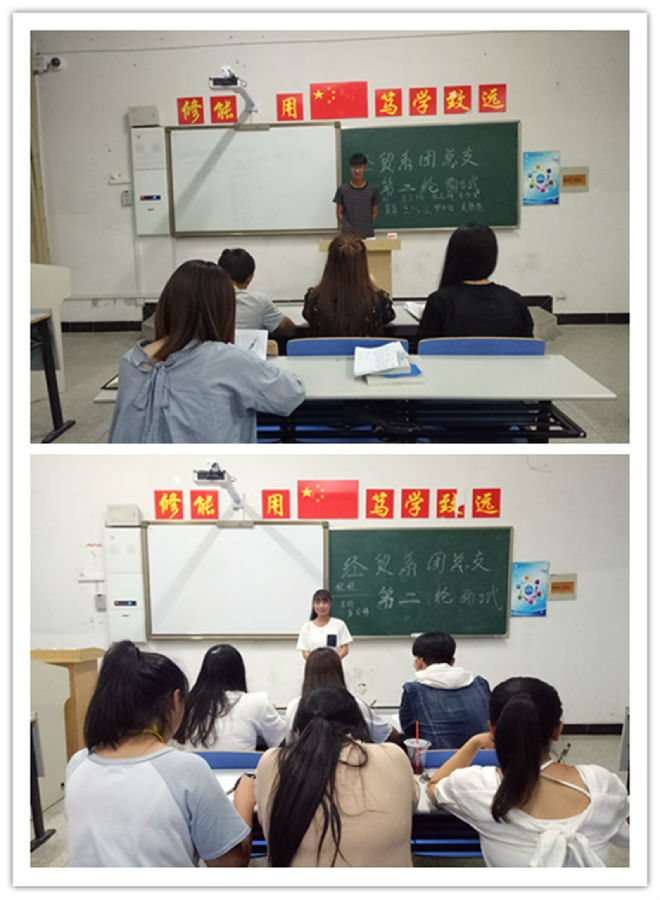 为了能吸纳新生中的优秀人才,在经过第一轮笔试后,2017年9月19日19:00,经济贸易系团总支在经贸系1106、1107、1108三个教室进行17级新生们第二次面试,同时也给新同学们又一个展示自我的平台。