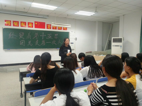 会议最后,团总支副书记祝贺大家顺利成为经济贸易系第十五届团总支新成员。