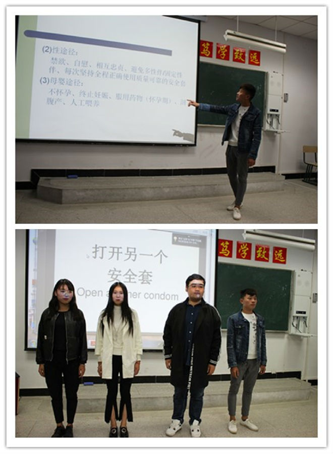 活动开始,主持人先做了自我介绍,紧接着简单明了的概括了HIV、AIDS的定义,对其特点、发病过程以及如何预防进行了详细的解释。随后,又介绍了病毒在人体的分布、病毒在人群的传播方式,呼吁大家不吸毒以及不使用用过的医疗设备等。通过这些讲解,同学们对艾滋病的相关知识以及预防和治疗过程有了清楚的认识。