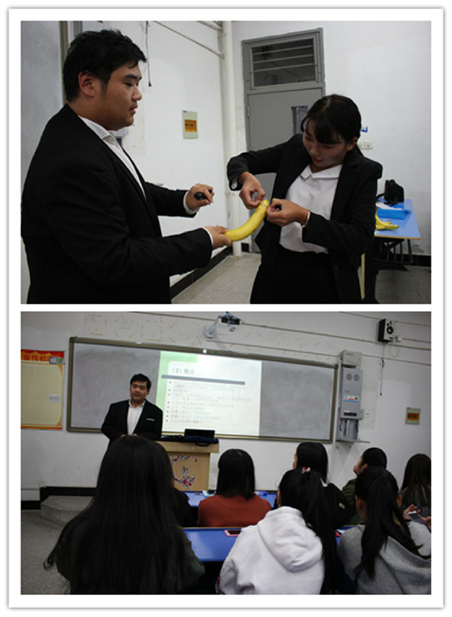 接下来的condom演示让很多同学感到尴尬,但是主持人手拿香蕉和避孕套的时候,大家还是聚精会神的看着着主持人学习如何使用避孕套的用法,最后还邀请两名同学积极地参与进来,与主持人互动,大大加深了同学们对其用途的理解。