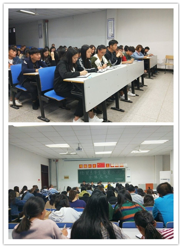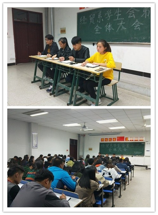 为了让干事们在以后的工作中互帮互助,团结友爱,展现学生会积极饱满的精神面貌。10月29日下午,经济贸易系在1101教室召开“经贸系学生会第二次全体大会”。经济贸易系全体成员参加此次会议。会议开始前,各部门进行工作汇报。