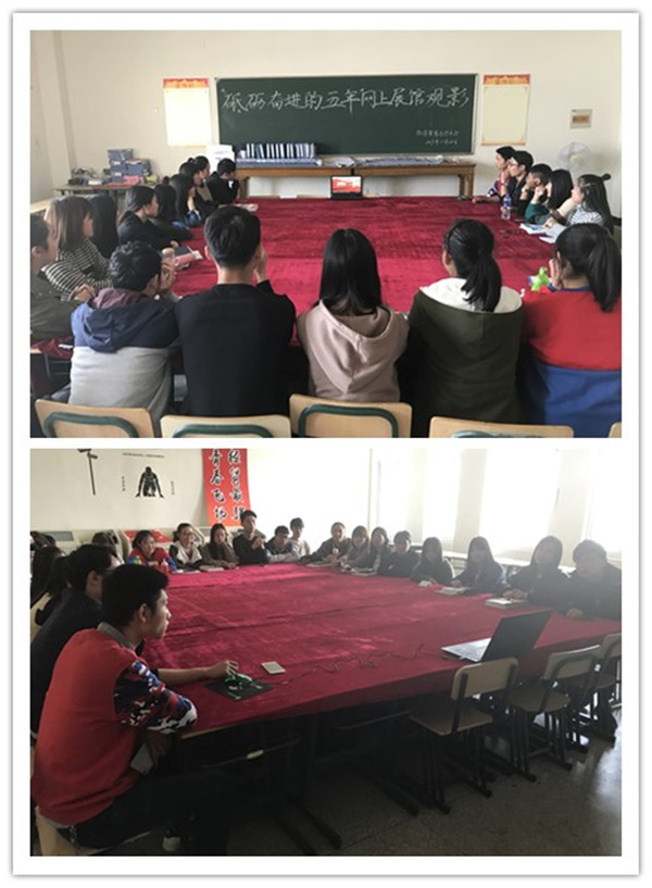 为深入贯彻落实以习近平同志为核心的党中央治国理政新理念新思想新战略。10月26日中午,经济贸易系学生会在1328教室进行了“砥砺奋进的五年”网上展馆,经济贸易系学生会主席团以及各部门大二干事参加此次观影活动。