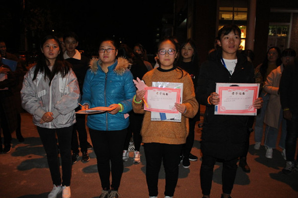 活动开始前,工作人员宣读比赛规则。活动正式开始,同学以饱满的热情奔跑,共同前往赛点。第一个比赛场地为经贸大厅,参赛队伍需完成指定项目“叠罗汉纪念”,这是个考验团队合作的项目,不仅要协作完成还要笑露牙齿。接着,奋力前往下一个比赛项目“金鸡独立”,该项活动考验队员之间的平衡力。第三项活动参赛人员需在规定时间内,找到带有时间的荧光棒,组内讨论,将其中一只荧光棒交给工作人员统计时间。活动结束,参赛人员集合,进行颁奖。