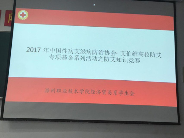 为了让更多的同学能够了解到艾滋病的相关知识,从而更加有效地预防艾滋病。经济贸易系学生会实践部于12月1日中午在经贸楼1119教室举办了“预防艾滋病知识竞赛”活动。出席本次活动的评委有:经贸系学生会副主席郭萧、办公室副主任李苗苗、学习部部长张梦楠。