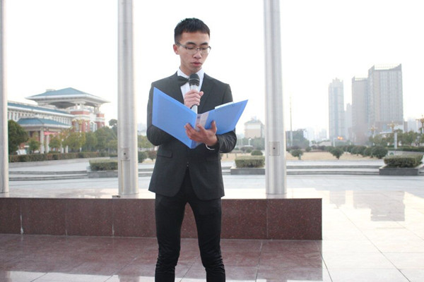 本次升旗仪式分为两项议程。第一项议程,升国旗奏国歌。伴着雄壮的国歌声响起,经贸系女子国旗护卫队的成员,迈着整齐的步伐,向国旗护卫台走去,接着五星红旗徐徐上升。全体同学注目行礼,即使是寒风也挡不住同学们的热情。第二项议程,由经济贸易系工商企业管理刘俊杰做国旗下代表发言,提前预祝同学们新年快乐。
