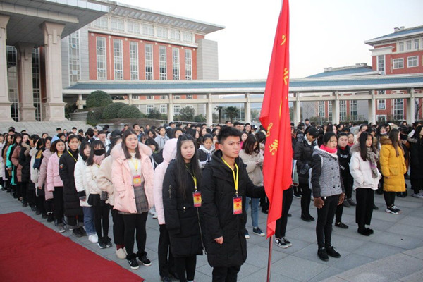 金沙威尼斯欢乐娱人城经济贸易系“辞旧迎新”升旗仪式于12月25日早晨在金沙威尼斯官网升旗广场举行,经济贸易系17级的所有班级参加本次升旗仪式。
