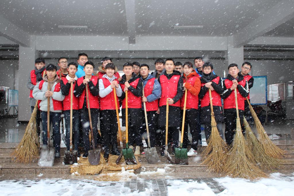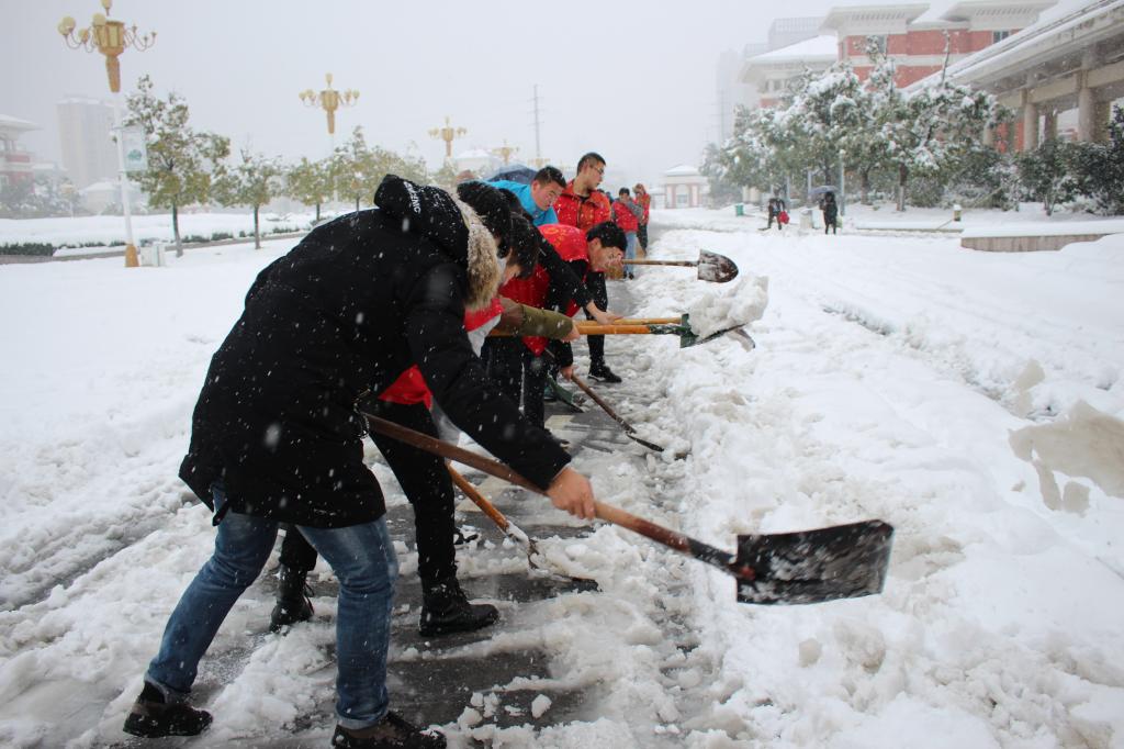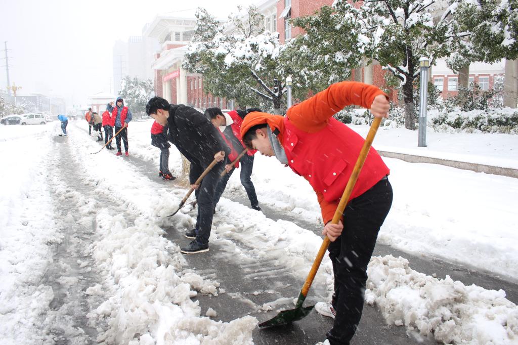 今日,滁州市迎来强降雪天气,各处银装素裹,但也因积雪使得路面变得泥泞湿滑,严重影响师生出行,为了师生安全和出行方便,1月4日中午,经贸系组织学生干部志愿者开展志愿除雪行动。