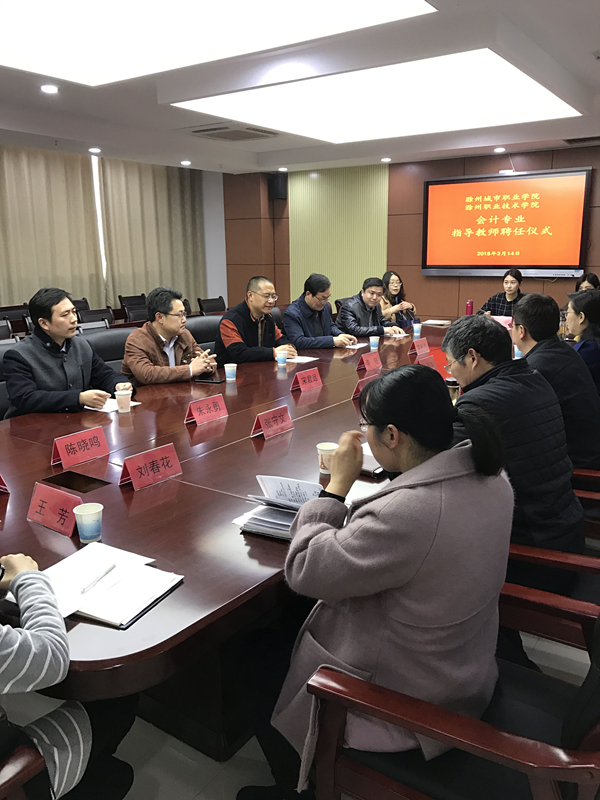 2018年3月14日下午,经贸系党总支书记李有志、组织人事处处长李超、经贸系副主任宋君远及会计教研室5名专职教师赴滁州城市职业学院参加该院会计专业青年指导教师受聘仪式。该活动是我院为进一步增强校际合作,充分发挥两校专业优势、取长补短,形成合力并进、互相帮扶的专业发展模式而做出的一次尝试。