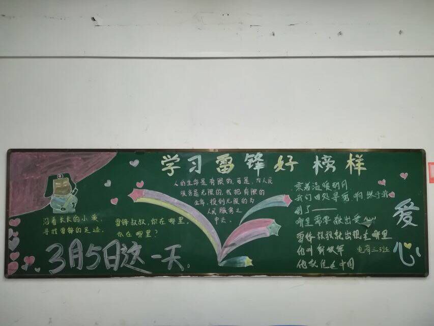 为了进一步弘扬雷锋精神,践行社会主义核心价值观,经济贸易系学生会宣传部于3月16日中午在1328教室开展“‘雷锋月’黑板报班级评比”活动。出席本次活动的嘉宾有:经贸系学生会副主席郭萧、学生会女生部部长曹嫚嫚以及学生会宣传部部长贾雪冰。