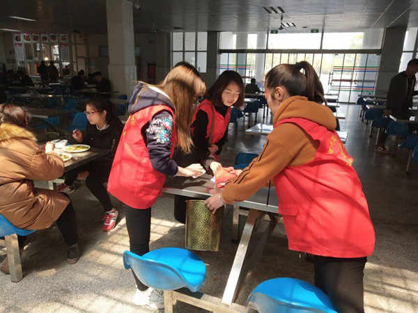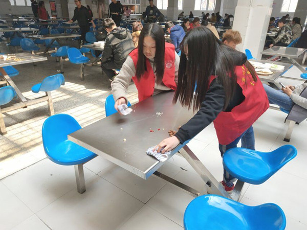 为学习雷锋精神,贯彻落实雷锋同志的高尚品质。3月20日,经贸系16级会计七班团支部在第一食堂举行学雷锋精神义务劳动活动,全体班级成员参加此次活动。