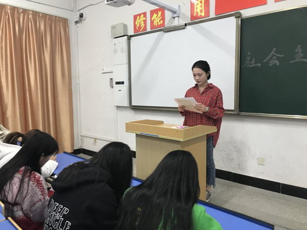 为深刻开展高校共青团学习宣传贯彻习近平新时代中国特色社会主义思想“四进四信”思想,经济贸易系共16个团支部于4月26日晚自习举办“四进四信”进团课系列之社会主义核心价值观“说团课”活动。其中17会计3班团支部、17会计7班开展了“和谐”主题团课;17会计5班、17电商1班开展“公正”主题团课;17电商3班、17工商企业管理班开展“文明”主题团课;17会计6班、17商务英语班开展“爱国”主题团课;17旅管1班、17旅管2班开展“诚信”主题团课;17城轨2班、17会计4班开展“富强”主题团课;17电商3班、17市营1班开展“敬业”主题团课;17市营2班、17空乘班开展“自由”主题团课。