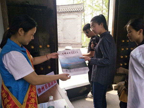 活动开始,志愿者们向旅客们发放《滁州市旅游交通图》、《旅游安全宣传手册》、《旅游突发事件应急手册》、《文明旅游出行指南》等宣传资料,号召旅客通过自身示范和倡导文明旅游主张,塑造旅客的崭新形象。活动期间,志愿者们维护秩序、劝导旅客文明游玩,为旅客提供旅游指南、咨询等相关志愿服务内容,积极为旅客排忧解难。