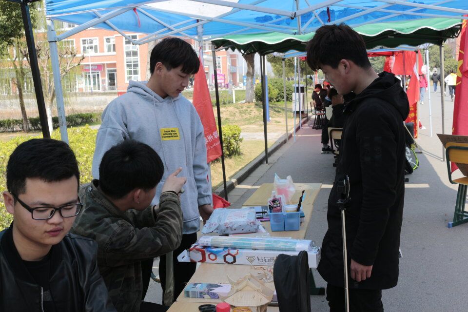 活动开始后,人越聚越多,同学们不断从路口涌来。不大一会,展台周围就站满了人,一些同学在静静的询问着自己心仪商品的价格,还有些同学不断穿梭在人群中寻找自己喜爱的物品。工作人员为了招揽顾客带劲吆喝都充当“小商家”,每个人都使出浑身解数,努力推销起商品,现场热闹非凡。活动在各系团总支的配合下持续开展了三天。