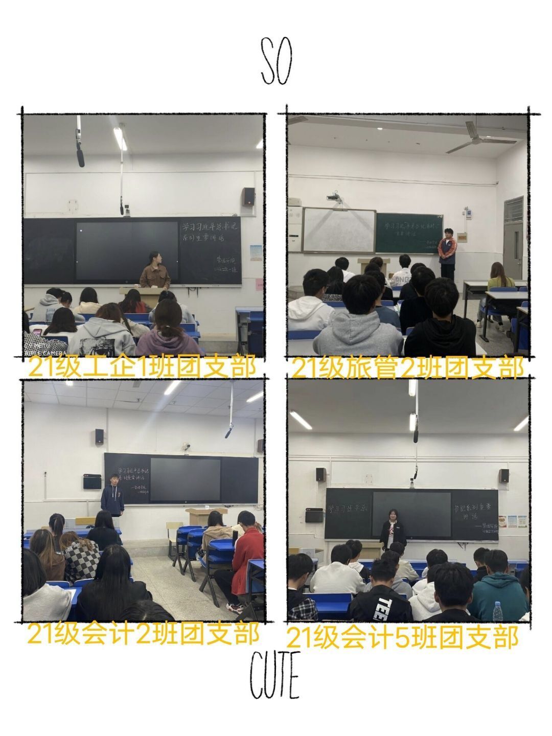 21级各支部团支书带领团学青年们认真学习习近平总书记系列重要讲话精神,大家深受到未来祖国发展的宏伟蓝图,这是新一代的机遇和使命。只有努力学好本领,敢于创新,奋勇向前,才可以为祖国现代化建设奉献自己的青春力量。