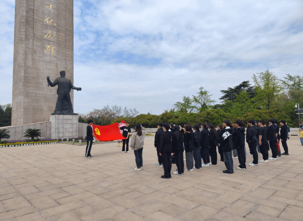 青松挺立、翠柏环抱,雨花台烈士陵园静穆庄严。支部党员师生、入党积极分子沿着烈士陵园1500米的中轴线,由北向南,从烈士就义群雕、烈士纪念碑、倒影池、纪念桥、纪念馆、忠魂亭依次展开,组成中心纪念区,追溯红色纪念建筑群,帮助全体党员师生、入党积极分子更深切地去感受红色建筑中所蕴含的工匠精神和爱国主义情怀。