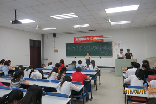 为促进同学们深入思考和深刻理解“中国梦”的内涵,激发同学们追梦圆梦的动力。2013年5月13日晚,在系党总支的部署下,经贸系团总支、学生会举办的“我的中国梦”征文演讲比赛决赛在1101教室圆满落幕。