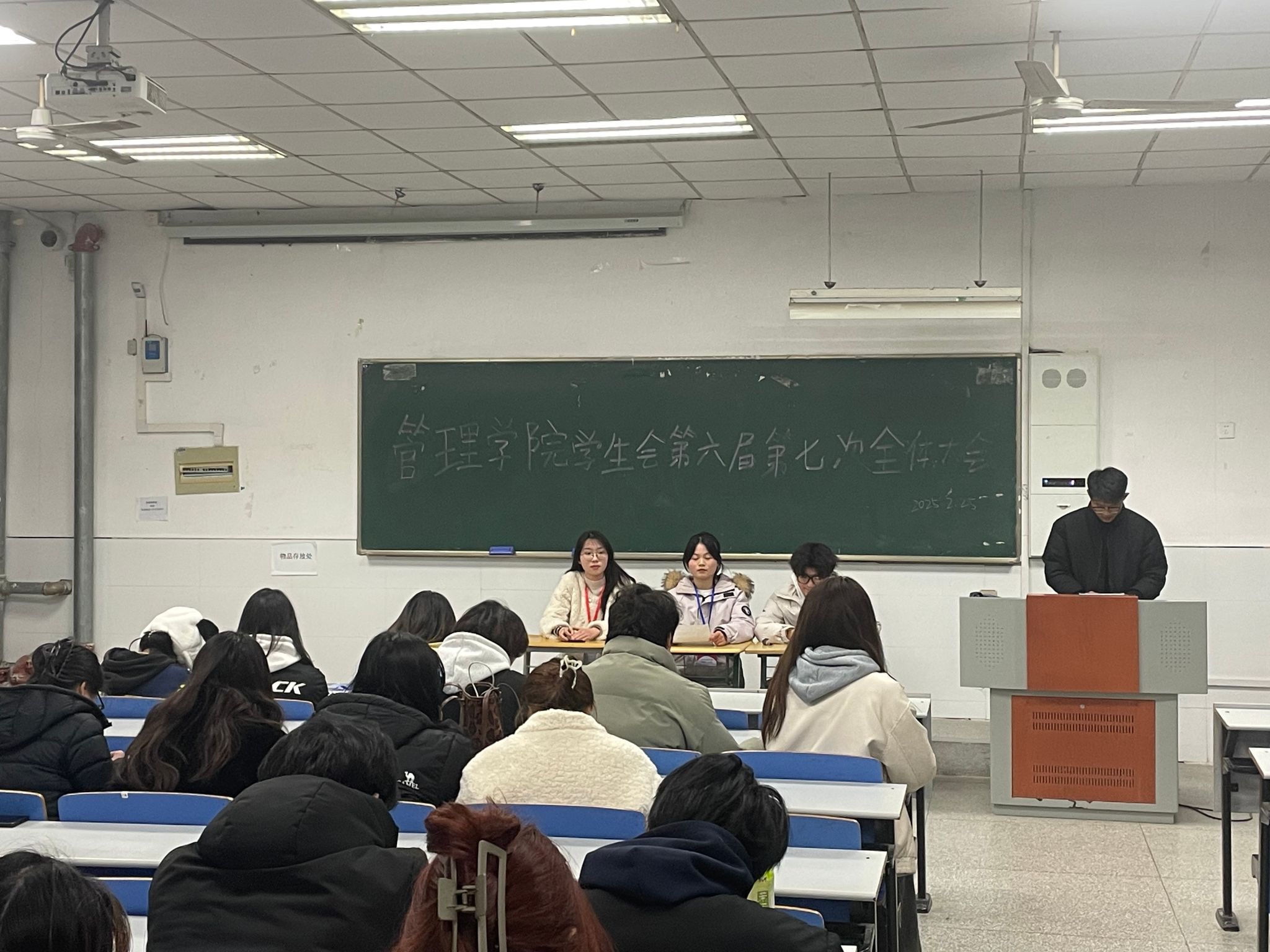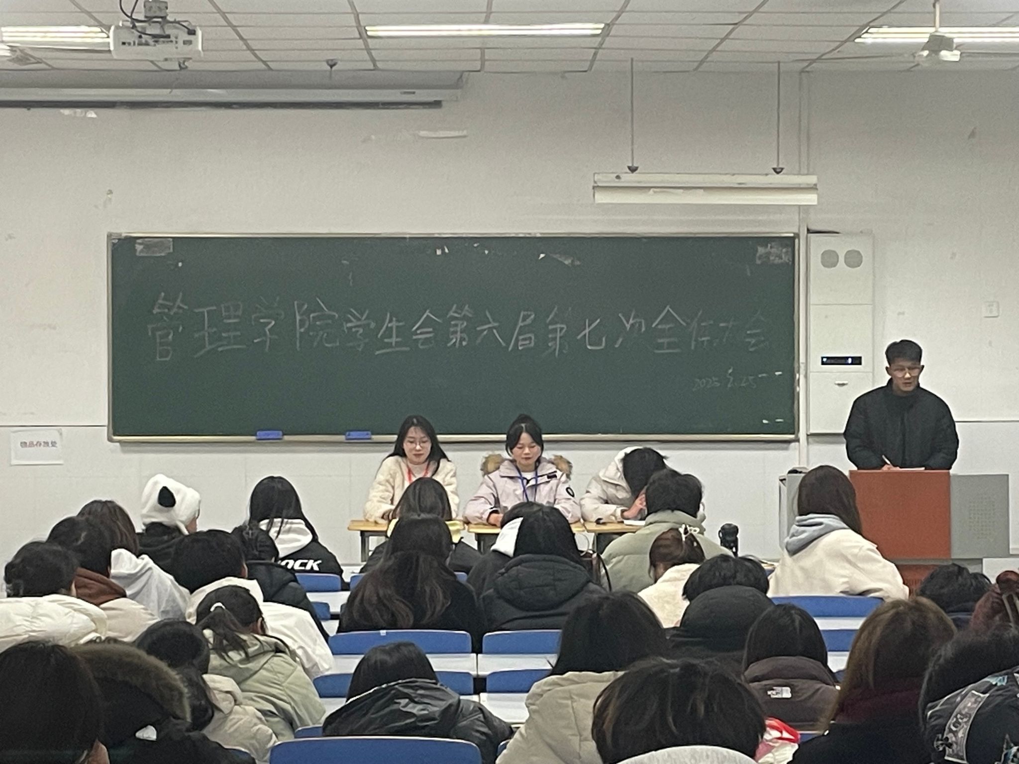2025年2月25日,管理学院学生会在致真楼1101教室召开第六届第七次学生全体大会。