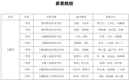 2022年5月21日,由“中国商业会计协会”、“全国财经职业教育集团”主办的第四届“科云杯”全国职业院校高职组税务技能大赛成功举办。来自全国300多所院校的近591支代表队、1773名学生参加了此次竞赛。我院财务会计系派出2支队伍参加,由夏敏、刘慧娟、王柏香老师指导的第一代表队(蔡杨森、雷晴、朱佳慧)和第二代表队(徐月月、王李红、刘婉雨)同时荣获安徽省一等奖。