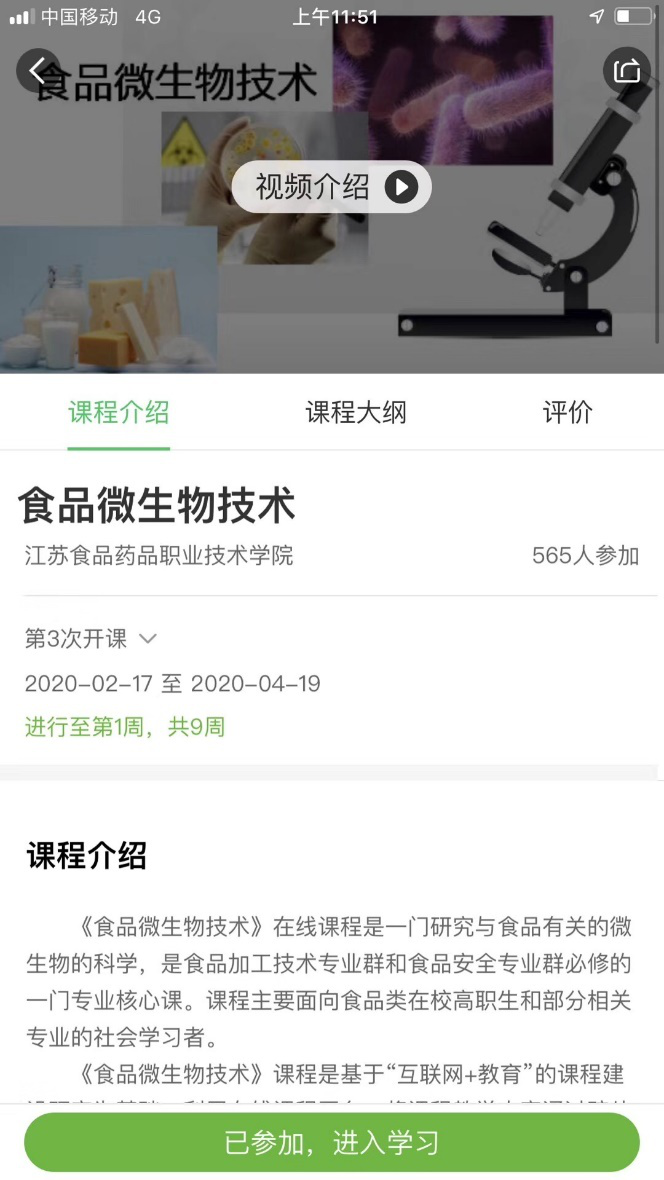 《食品微生物基础》课程,在前期教学过程中,该课程完成了学习通线上教学资料的建立,包括教案、PPT、电子图书,并在中国大学慕课选择了江苏药品职业技术学院录制的精品课程《食品微生物技术》作为学习资料。我没有用ppt录频或者用其他设备录制自己讲课的视频,能找到合适的精品课程就很好。