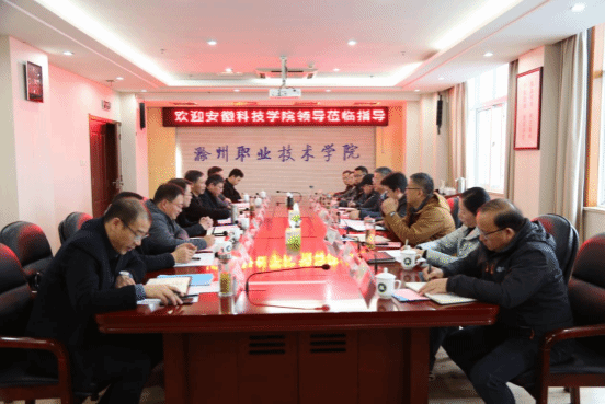 3月21日下午,安徽科技学院校长李震、副校长李升和一行莅临金沙威尼斯官网调研指导联合培养专升本工作。校党委书记曹付忠,党委委员、副校长苏有良,党委委员、总务处处长胡凼,校长助理、招生就业处处长穆松陪同考察。
