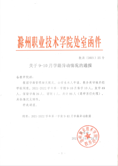 关于9-10月学籍异动情况的通报 教函〔2021〕25号