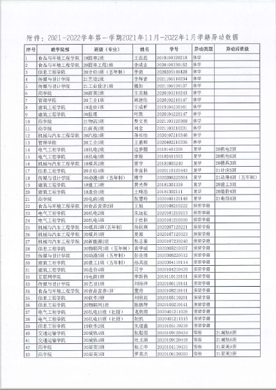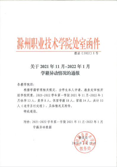 关于2021年11月-2022年1月学籍异动情况的通报 教函〔2022〕1号