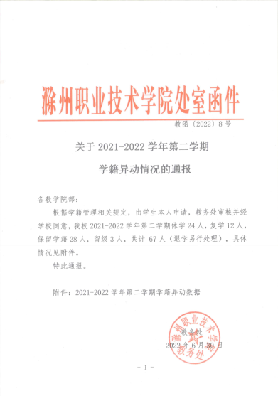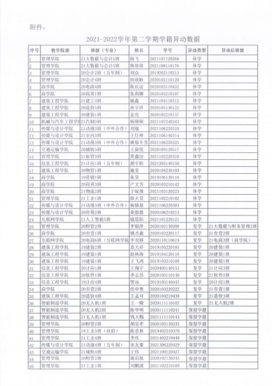 关于金沙威尼斯官网2021-2022学年第二学期学籍异动情况的通报 教函〔2022〕8号