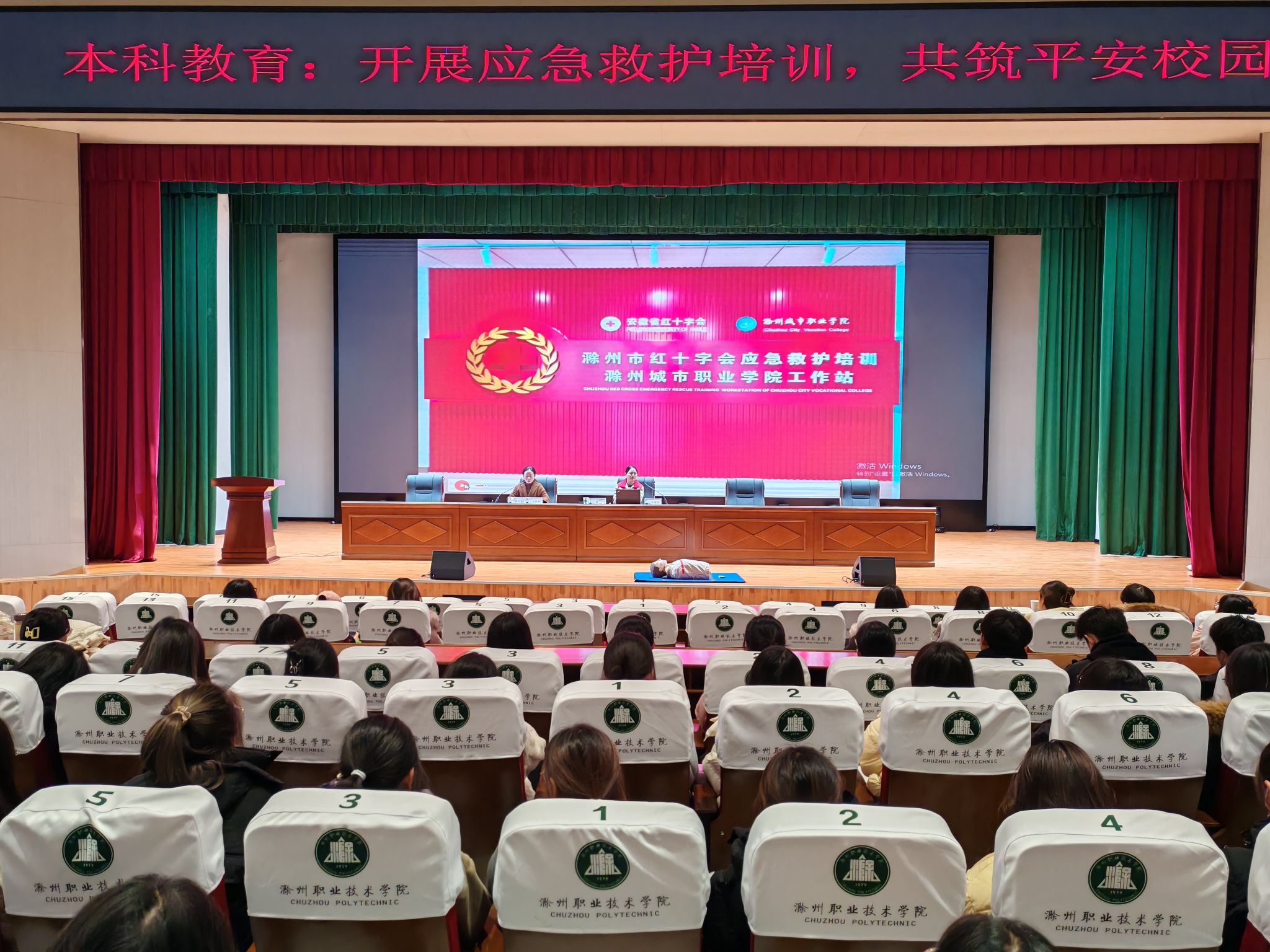 为提升本科师生的应急救护能力,普及急救知识,共同营造安全和谐的校园环境,12月11日下午,金沙威尼斯欢乐娱人城本科教育党支部邀请滁州城市职业学院沐菊和谢晓韵老师,在六号楼报告厅组织开展应急救护培训讲座。讲座由本科教育党支部书记薛天飞主持,本科教育400余名师生参加。