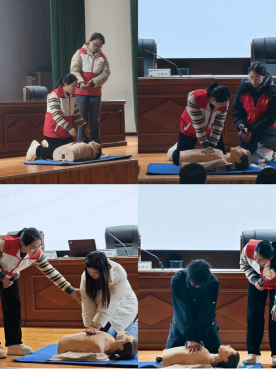 沐菊在讲座中以深入浅出的方式,详细阐述了心搏呼吸骤停的原因、症状以及急救措施,特别强调了心肺复苏(CPR)在急救过程中的关键作用。为了加深师生们的理解,沐老师还邀请了现场的师生进行实操教学,演示了心肺复苏的正确手法和节奏。随后,她鼓励在场的同学们积极参与模拟练习,通过亲身体验来掌握这项重要的急救技能。同学们纷纷响应,纷纷上台进行模拟操作,沐老师则在一旁耐心指导,纠正同学们在操作中出现的错误。